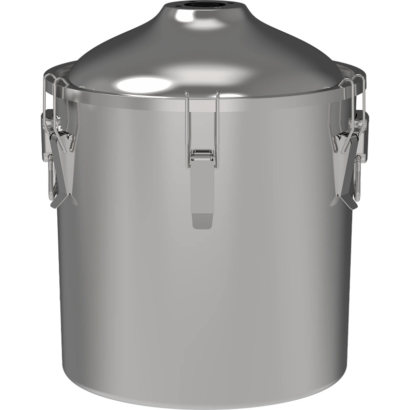 Le couvercle bombé de la cuve (de type convexe) est une conception innovante qui assure une condensation uniforme des vapeurs, produisant un distillat aux saveurs et arômes excellents. La forme du couvercle permet la formation de mousse dans le mélange ou le moût sans risque de contamination de la colonne et de son contenu.