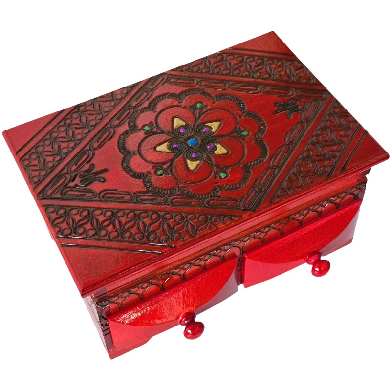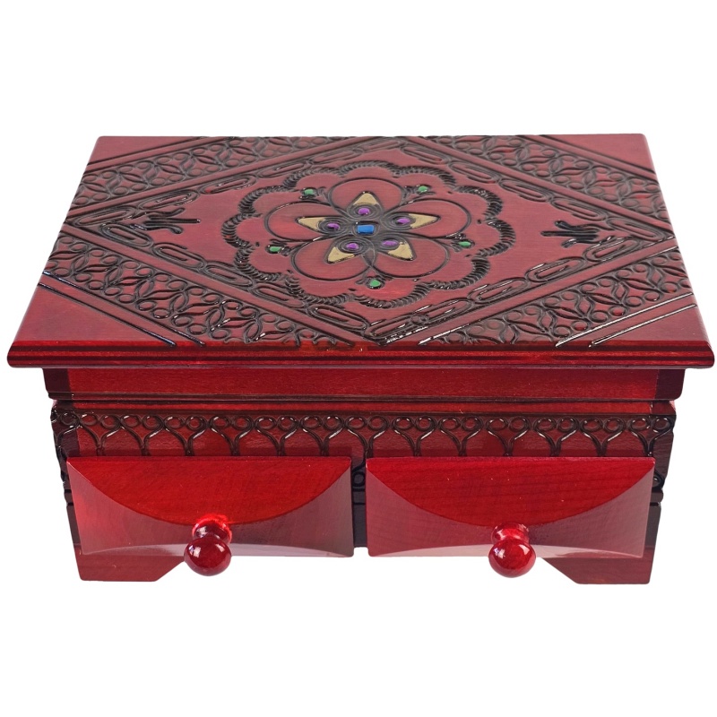 Ce coffret Ce coffret à bijoux en bois est non seulement un accessoire pratique, mais aussi une œuvre d'art qui trouvera sa place au cœur de chaque intérieur. Chaque détail témoigne d'un savoir-faire artisanal authentique et de la beauté de l'art traditionnel.