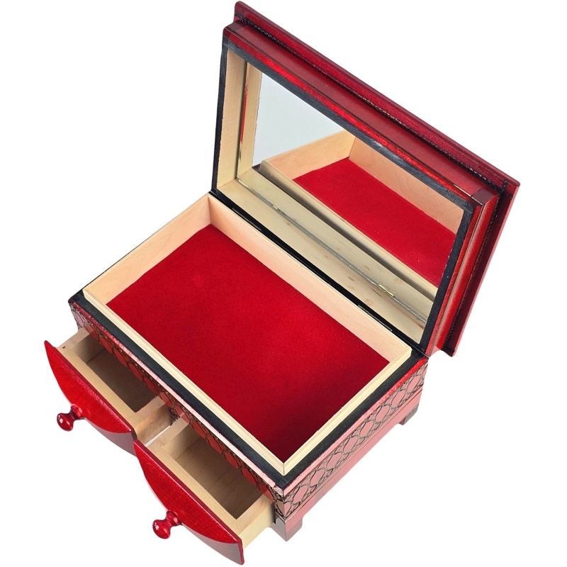Couleur rouge distinctive et brillante – Le traitement de surface confère à la boîte à bijoux un aspect éclatant et une protection contre les dommages.