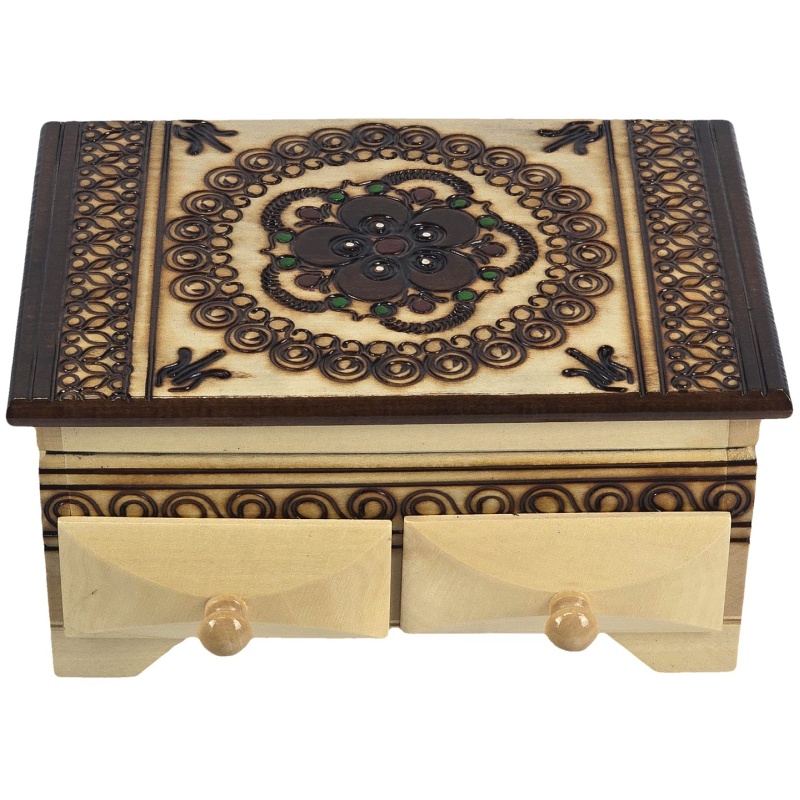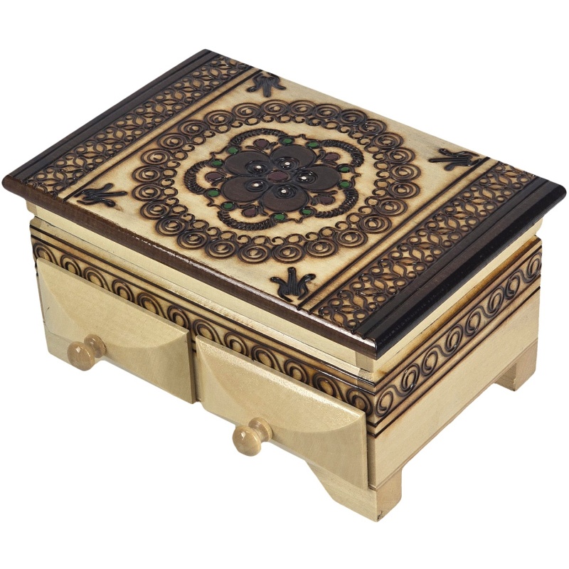 Introduisez une pièce d'artisanat traditionnel dans votre intérieur avec cette magnifique boîte à bijoux lumineuse. Grâce à ses motifs sculptés détaillés, ses décorations faites à la main et sa finition de haute qualité, elle devient non seulement un espace de rangement pratique, mais aussi un bel élément décoratif.