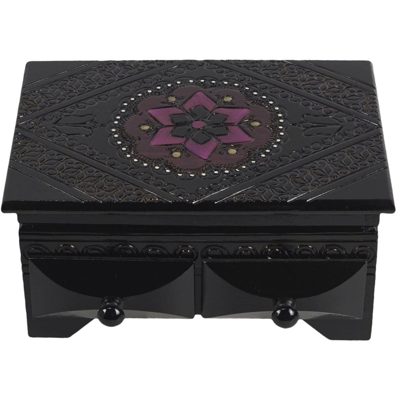 Cette pièce unique est bien plus qu'une simple boîte de rangement : c'est un bijou décoratif à part entière. L'élégante couleur noire, associée au motif folklorique sculpté et au motif violet du couvercle, crée une impression de noblesse, de profondeur et d'individualité.