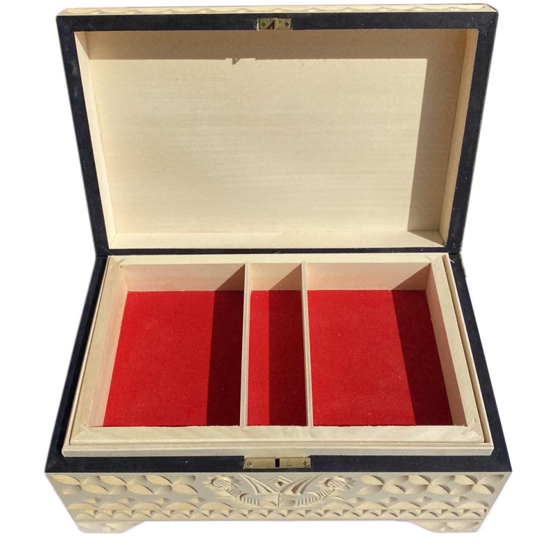 • Sculpture artisanale traditionnelle – chaque pièce est unique – Chaque boîte à bijoux est réalisée de manière unique par un sculpteur expérimenté. Les reliefs aux motifs végétaux et géométriques confèrent à la pièce un caractère folklorique authentique.