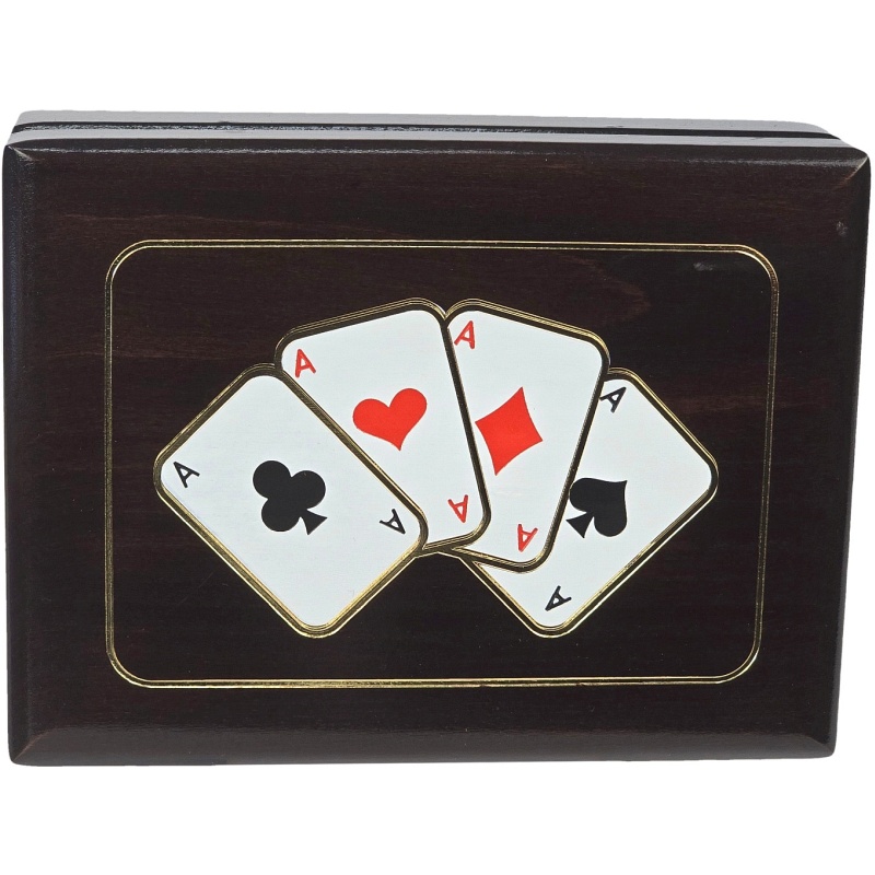 Une boîte à cartes est une solution pratique et élégante qui gardera vos cartes à jouer toujours protégées et bien organisées. Grâce à sa teinte marron foncé et à son motif de cartes distinctif, il embellira votre intérieur ou votre salle de jeux, tout en protégeant vos cartes de l'usure.