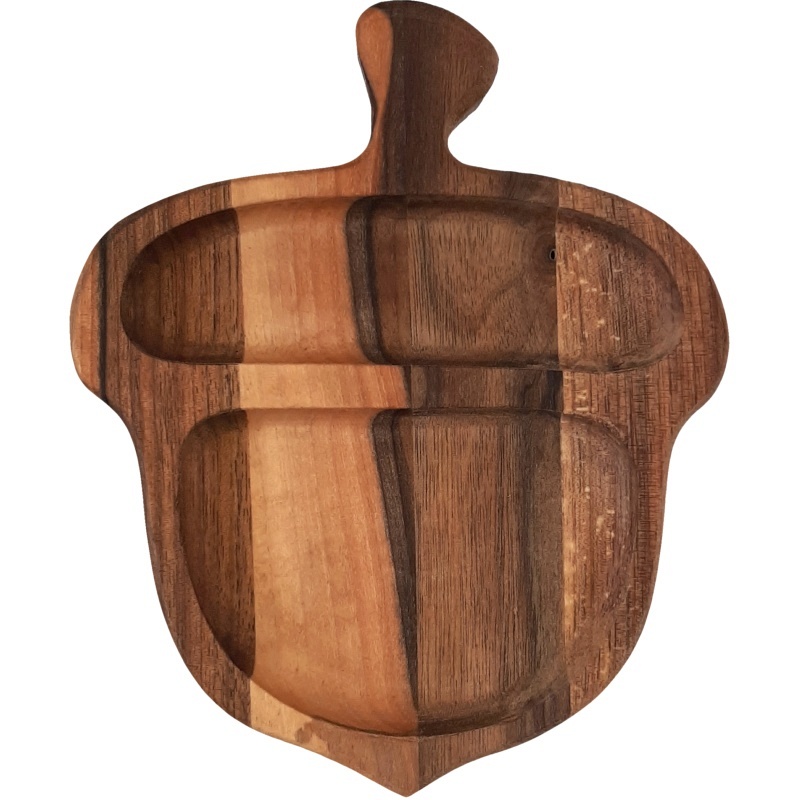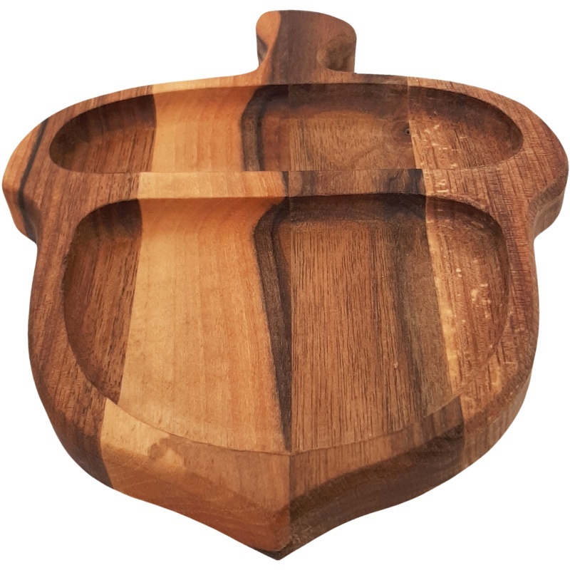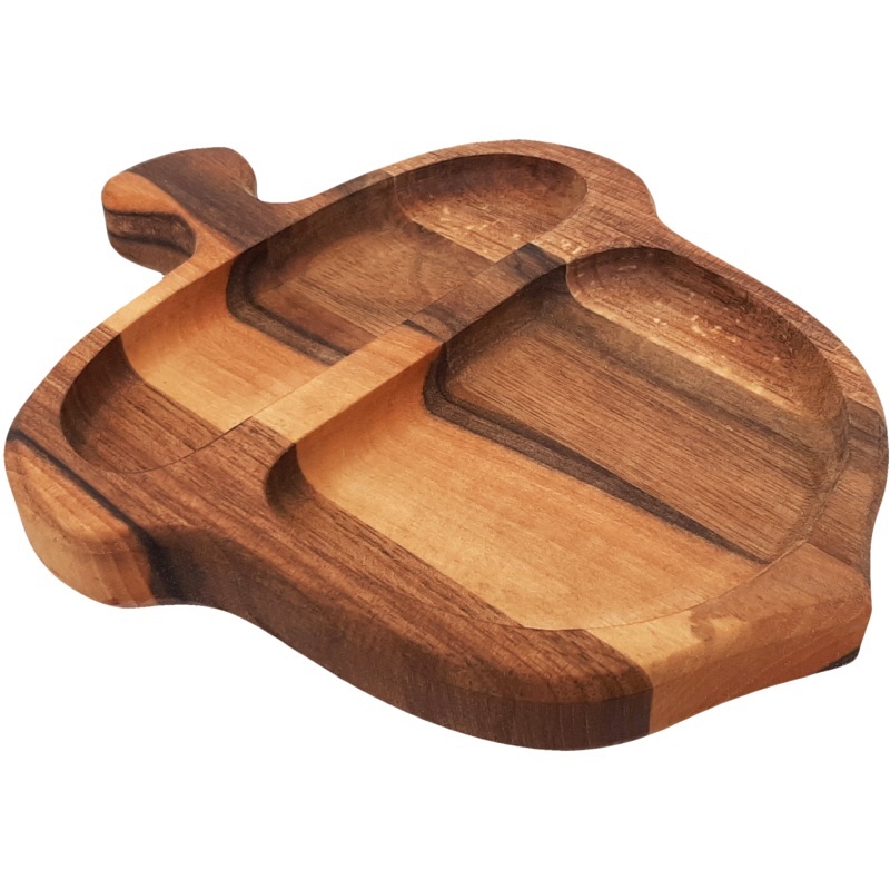 Bol en bois - une pièce originale pour le service et la décoration Ce magnifique bol en bois en forme de pomme est non seulement un accessoire pratique pour la cuisine, mais aussi un élément de design élégant. Fabriqué en bois dur de haute qualité, il présente un joli motif qui confère à chaque pièce un caractère unique. Grâce à sa division en quatre compartiments, il est idéal pour servir avec élégance divers mets délicats, des noix aux fruits secs en passant par les petits canapés.