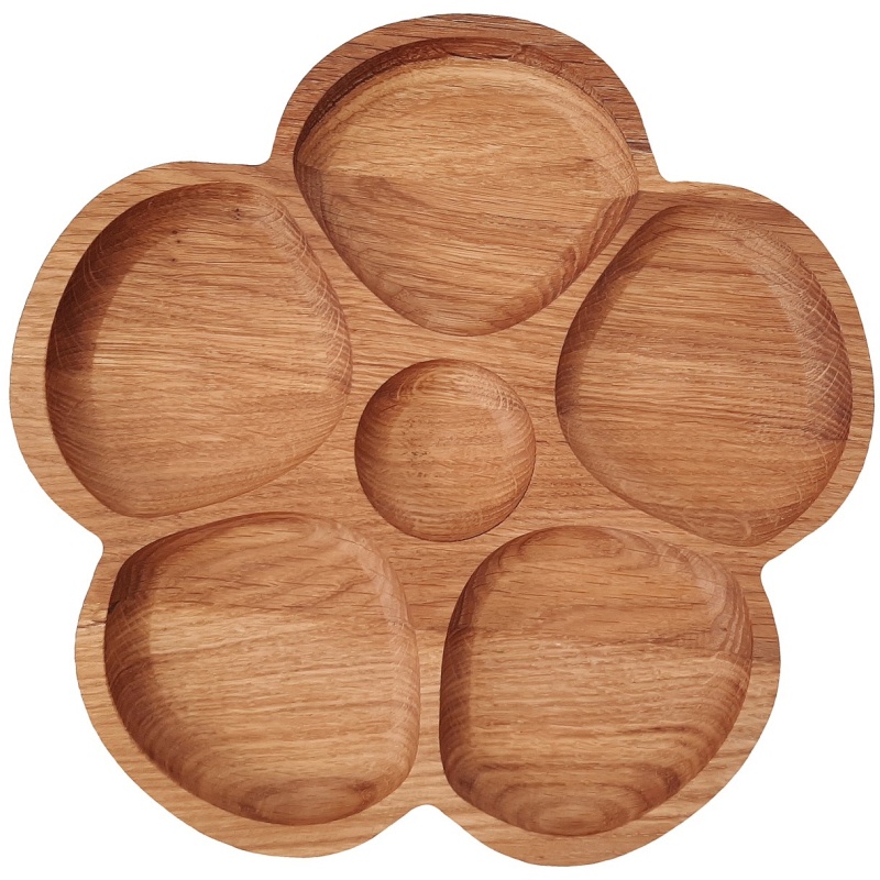 • Forme originale avec compartimentation pratique : Les cinq compartiments à fleurs et la partie centrale offrent un agencement parfait de différents types de noix, sauces, fruits secs ou confiseries.