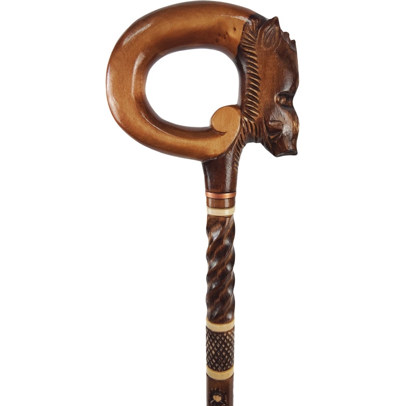 Cette canne de marche magnifiquement conçue est un véritable chef-d'œuvre d'artisanat. Grâce à un travail manuel précis, une sculpture raffinée et un design unique orné d'un motif de sanglier, ce bâton est non seulement une aide à la marche pratique, mais aussi un accessoire élégant, l'expression d'un goût particulier.