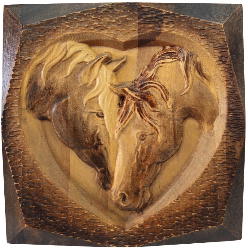 D’accuei » Peintures sculptées à la main » Cheval au coeur tableau 40 x 40 cm
