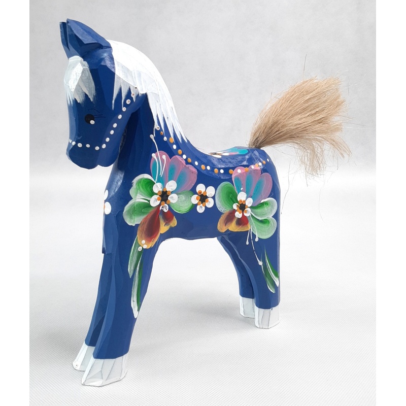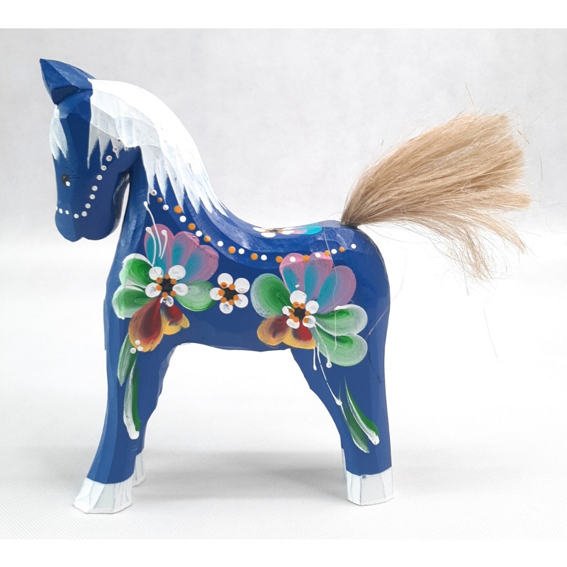 Cheval en bois peint bleu 12 × 10 cm est une décoration ludique et traditionnelle qui égayera n'importe quel espace avec ses motifs folkloriques et sa couleur bleu vif. Le bois sculpté à la main et la peinture soignée lui confèrent un caractère authentique, ce qui en fait un joli cadeau, mais aussi un accessoire exceptionnel pour votre maison ou votre bureau.