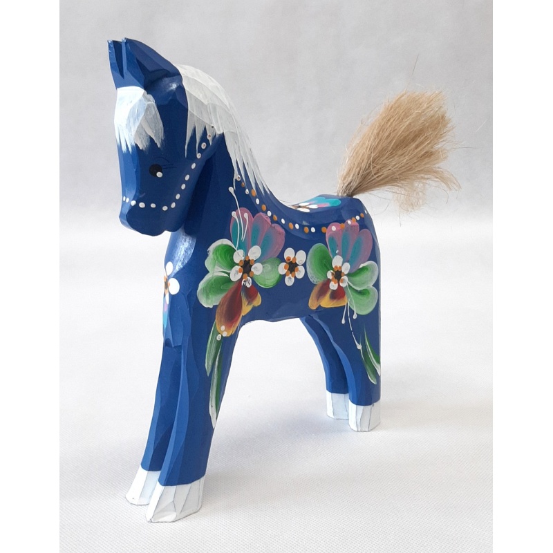 Ce cheval en bois peint à la main en bleu vif est une œuvre d'art exceptionnelle qui impressionnera immédiatement par sa finition détaillée et ses motifs folkloriques. Grâce à ses dimensions de 20 x 25 cm, il s'imposera comme un accessoire incontournable dans n'importe quelle pièce, que vous le présentiez sur une étagère, une commode ou une vitrine.