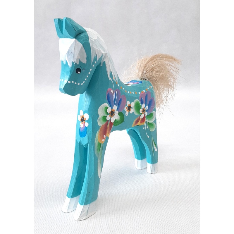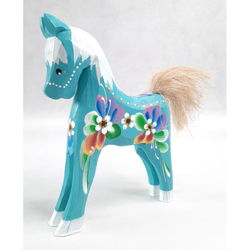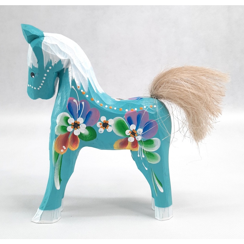 Choisissez un cheval en bois peint bleu clair de 12 × 10 cm et apportez une touche de gaieté multicolore et folklorique à votre intérieur. Que ce soit comme décoration, comme cadeau ou comme souvenir d'art traditionnel, il apportera toujours une touche de gaieté et de charme unique au quotidien !