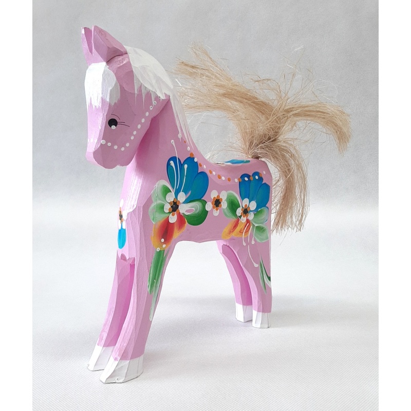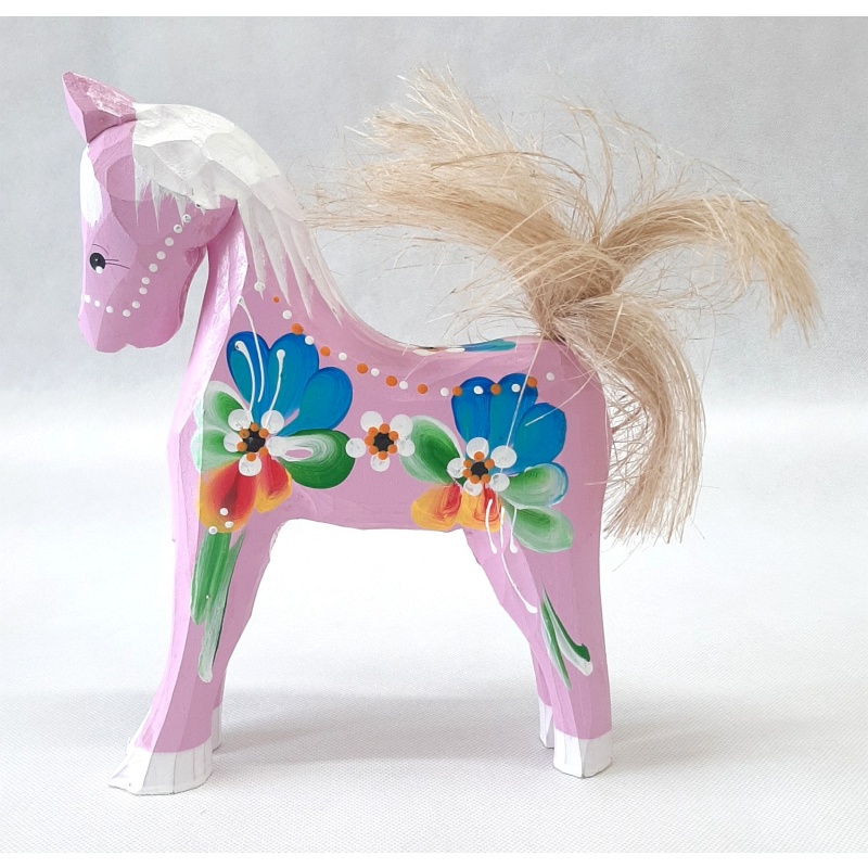 Égayez votre intérieur avec ce cheval en bois peint à la main d'un rose tendre, qui capture parfaitement la beauté et le charme des motifs folkloriques. Fabriqué en bois de haute qualité, il est peint avec une attention particulière aux détails. Grâce à ses dimensions de 18 × 15 cm, il se place facilement sur une étagère, une commode ou un bureau. Sa couleur douce et son motif folklorique attireront immédiatement l'attention.