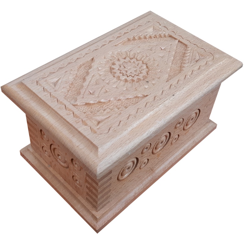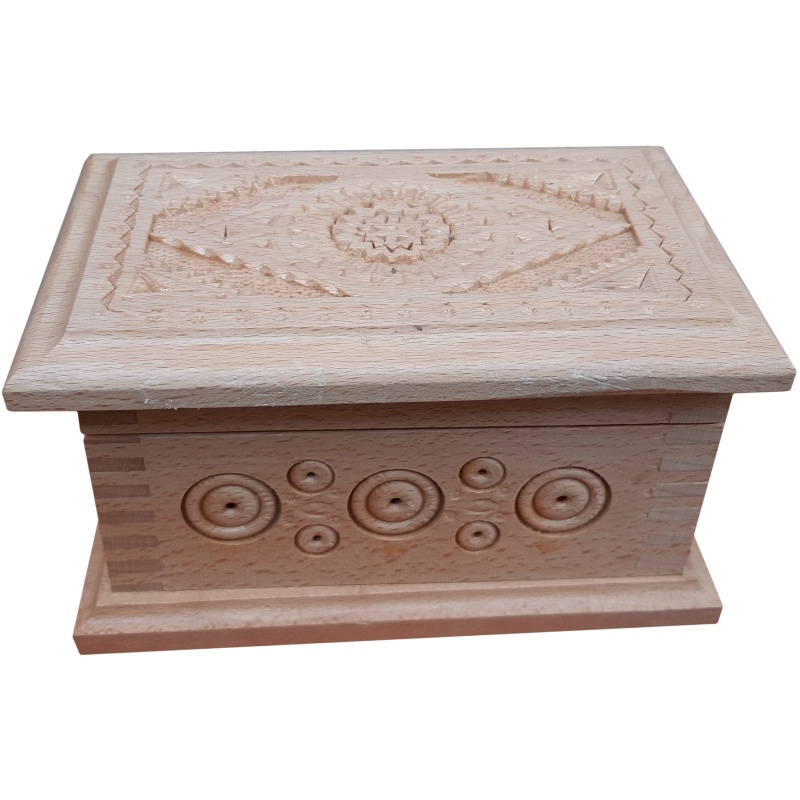 Offrez à vos bijoux et bibelots un espace exclusif grâce à cette boîte à bijoux en bois sculptée à la main. Ses dimensions de 17 × 11 × 9 cm offrent suffisamment d'espace pour ranger soigneusement bagues, boucles d'oreilles ou chaînes. La couleur brun clair du bois et les motifs finement sculptés confèrent à l'ensemble un charme incomparable.