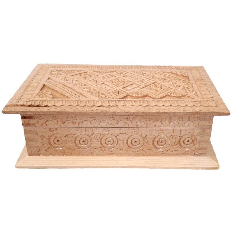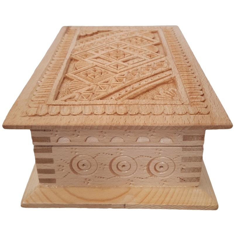 Ce coffret à bijoux en bois sculpté à la main est l'incarnation même de l'artisanat traditionnel et de l'amour du détail. Fabriquée en bois naturel de haute qualité, elle est décorée de motifs ornementaux précis qui lui confèrent un caractère rustique unique et un aspect authentique.
