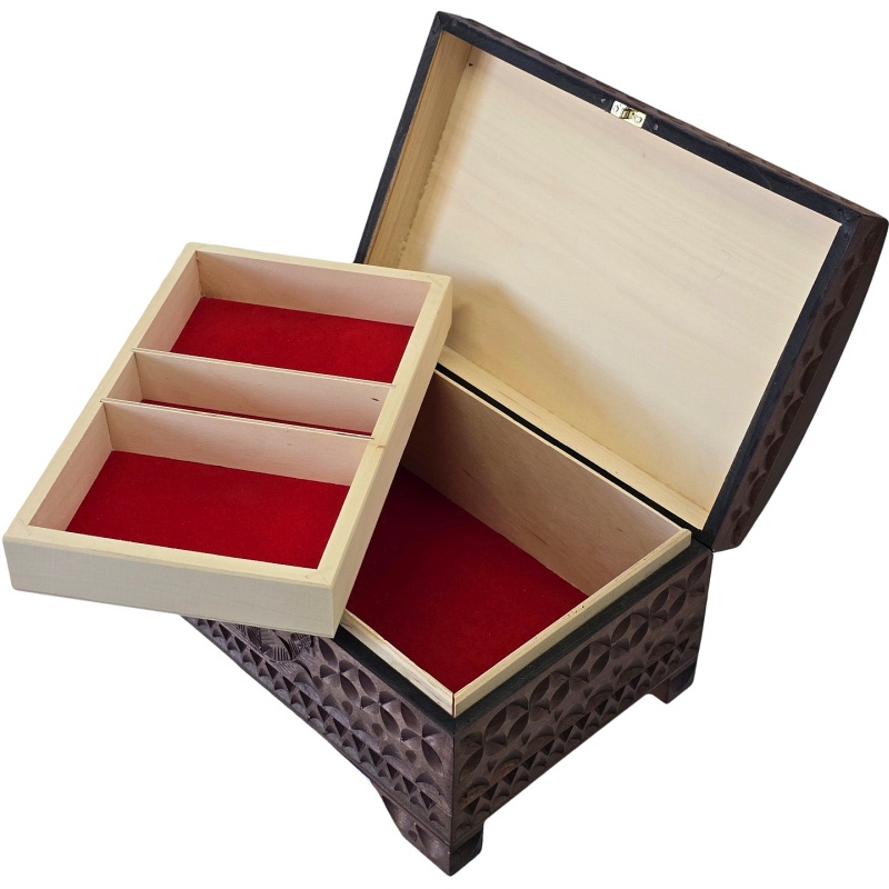 • Ornements sculptés traditionnels – Le couvercle et les côtés sont ornés de riches motifs – les motifs circulaires, les fleurs et les lignes géométriques sont harmonieux et raffinés grâce à un savoir-faire artisanal.