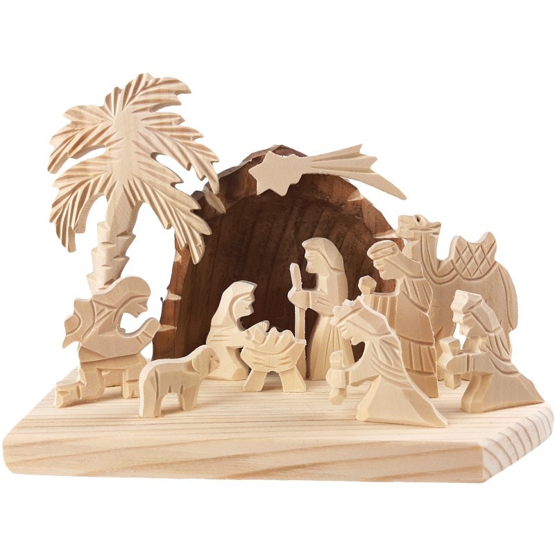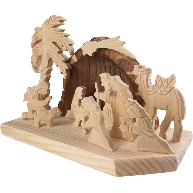 D’accuei » Bethléem » Crèche en bois sculptée à la main