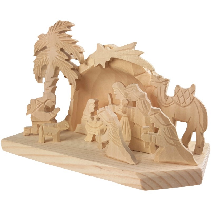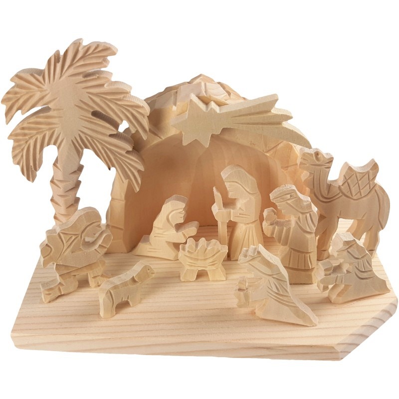 Cette magnifique crèche témoigne d'un savoir-faire artisanal et incarne la tradition chrétienne. Les personnages de la Sainte Famille, des Rois Mages, des bergers, des animaux et de l'étoile, sculptés dans du bois naturel, forment une composition harmonieuse qui apporte immédiatement une atmosphère festive et une profondeur spirituelle à la maison. Un accessoire idéal pour ceux qui souhaitent se remémorer le véritable sens de Noël.