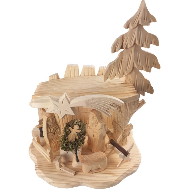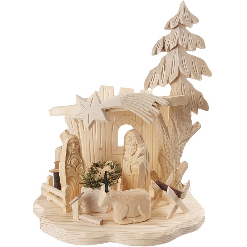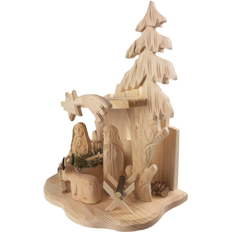 Cette crèche lumineuse et finement travaillée incarne le message de Noël dans sa forme la plus pure. Chaque personnage, chaque arbre et chaque étable sont soigneusement sculptés à la main dans du bois naturel, qui se distingue par ses motifs et sa teinte claire. Cette crèche n'est pas seulement une décoration : c'est une expression silencieuse de foi, de paix et d'une tradition artisanale qui perdure depuis des générations.