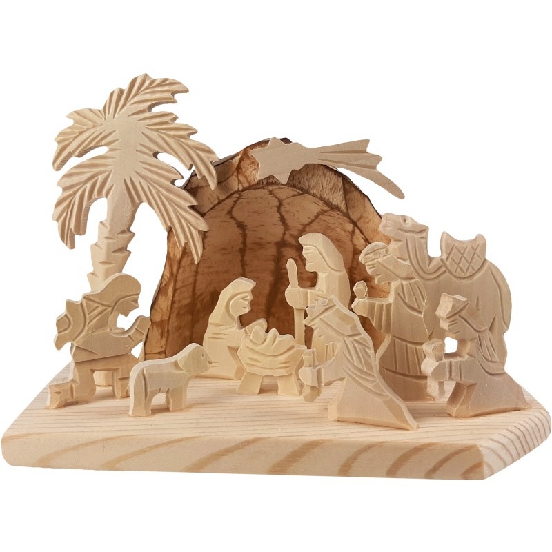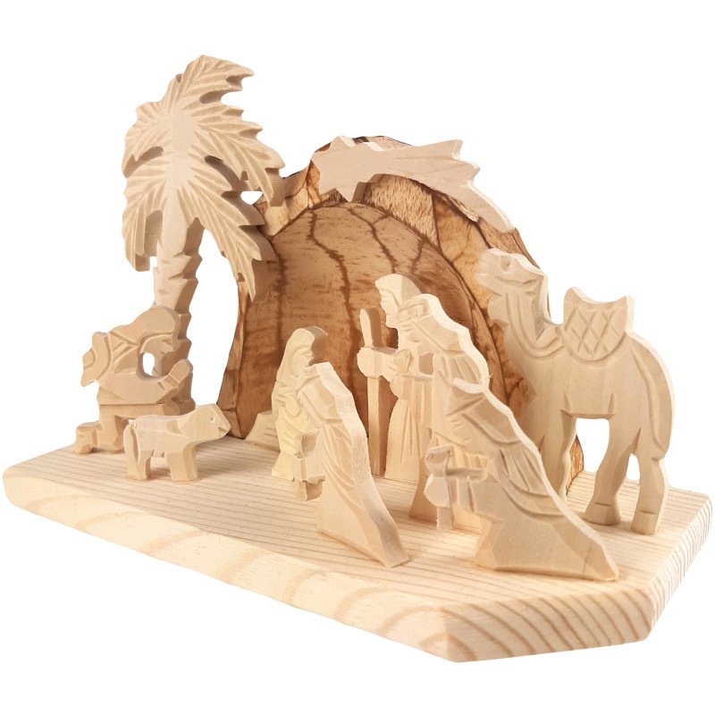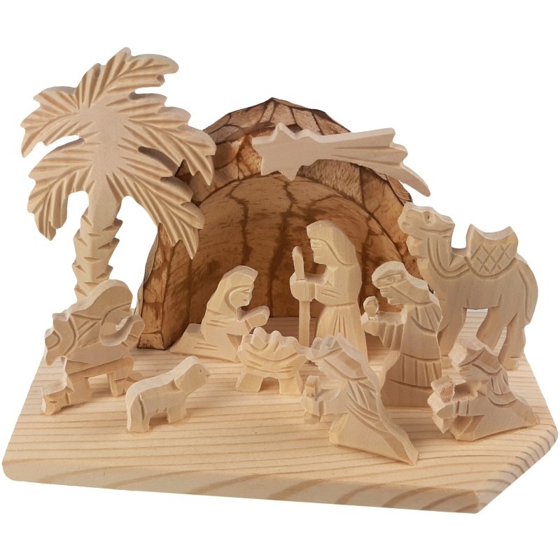 D’accuei » Bethléem » Crèche en bois sculptée à la main