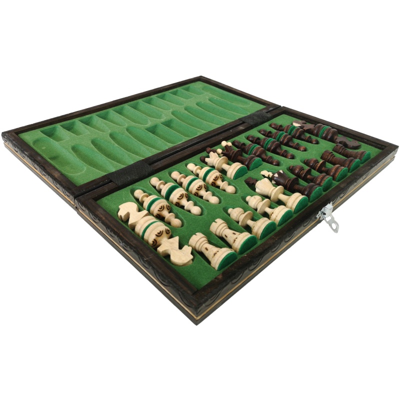 • Design élégant avec des ornements traditionnels - L'association de bois foncé et clair crée un joli contraste qui confère à l'échiquier un aspect sophistiqué et luxueux. Il est donc idéal non seulement pour jouer, mais aussi comme décoration élégante pour le salon, le bureau ou la bibliothèque.