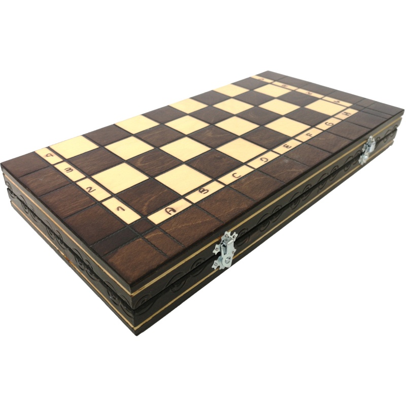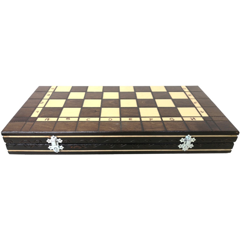 Ce jeu d'échecs en bois de 42,5 x 42,5 cm est non seulement un excellent jeu de société, mais aussi une pièce d'artisanat exceptionnelle. Leur style classique, leur fonctionnalité et leur beauté naturelle apporteront une touche de noblesse et de délicatesse à votre intérieur.