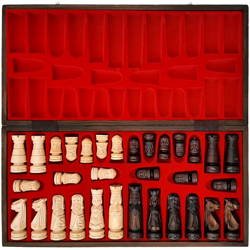 • Un savoir-faire artisanal et un souci du détail : chaque pièce est sculptée à la main dans un morceau de bois distinct, avec des caractéristiques uniques et un caractère distinctif. L'échiquier est solide, soigneusement conçu et se distingue par la précision des angles, du cadre et des marquages.