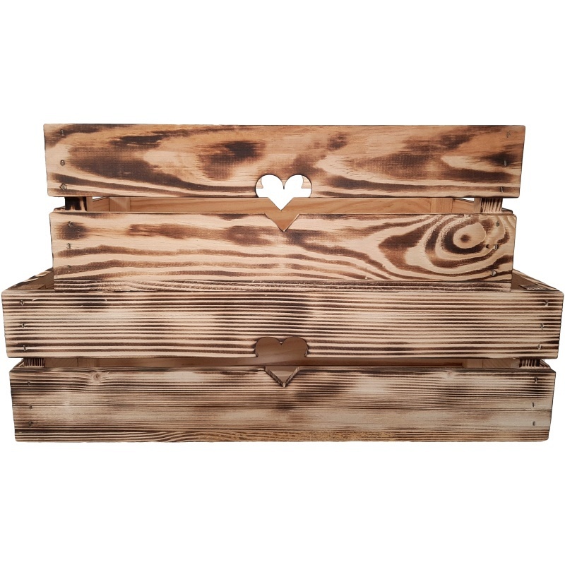 Cet ensemble unique de deux pots de fleurs en bois allie praticité et esthétique naturelle à votre espace. Fabriqués en bois d'épicéa de haute qualité, soumis à une technique spéciale de tannage et de brossage, ces pots de fleurs arborent un aspect authentique grâce à leur motif caractéristique de cernes annuels et à un contraste chaleureux entre les tons clairs et foncés du bois. Chaque pièce est ornée d'une découpe en forme de cœur, symbole de l'amour et de l'attention à la maison. L'ensemble comprend un grand et un petit pot de fleurs, formant ainsi un duo harmonieux et polyvalent.