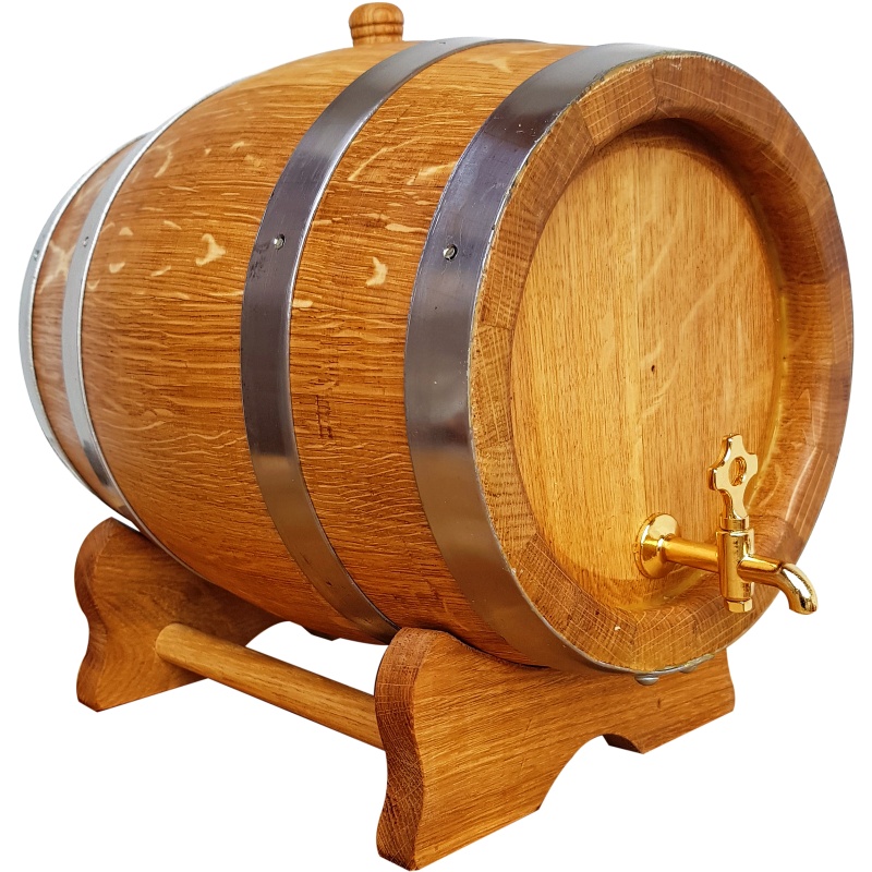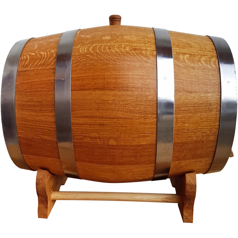 Ce fût en chêne français de 5,5 litres allie à la perfection savoir-faire traditionnel et élégance intemporelle. Fabriqué en chêne français de haute qualité, l'un des matériaux les plus prisés pour le vieillissement des vins et spiritueux, il allie fonctionnalité et esthétique. Son veinage naturel, finement strié, ses cerclages métalliques massifs et son robinet en laiton usiné avec précision, lui confèrent une allure luxueuse et raffinée. Sa base, fabriquée dans le même bois de chêne, assure sa stabilité, soulignant ainsi le caractère rustique de l'ensemble.