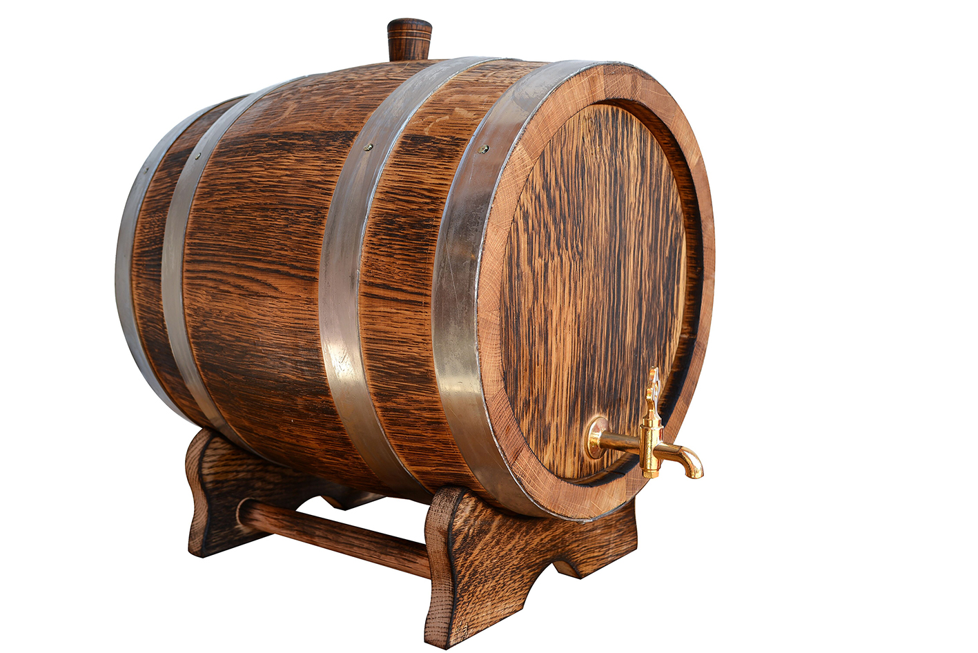 • Socle stable en chêne - Son socle solide assure la stabilité du tonneau même plein et permet un placement pratique, par exemple sur un comptoir de bar, dans une cave à vin ou un kiosque.