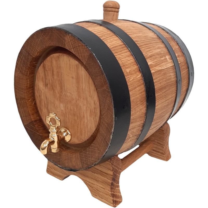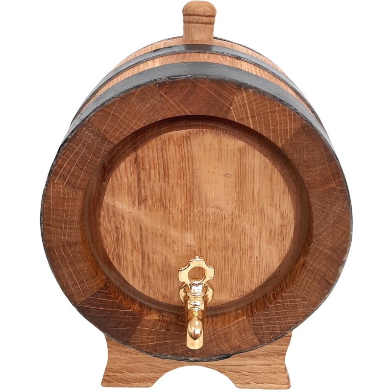 Ce fût en chêne de 2 litres, avec ses cerclages noirs et son robinet en laiton, est non seulement une aide pratique pour conserver les boissons, mais aussi un élément esthétique distinctif qui ravira les yeux et l'âme. Il allie fabrication traditionnelle, élégance et praticité : idéal pour tous ceux qui apprécient la qualité, l'authenticité et le style.
