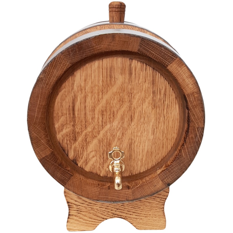Cet élégant fût en chêne de 5 litres allie savoir-faire traditionnel et matériau naturel de haute qualité. Fabriqué en chêne français durable, il a acquis, grâce à un tannage doux, un aspect unique avec une structure boisée accentuée et une teinte chaleureuse. Des cerclages métalliques confèrent au fût robustesse et caractère, tandis que le robinet en laiton permet un dosage aisé. Sa base en chêne massif assure sa stabilité, soulignant ainsi l'aspect rustique de l'ensemble.