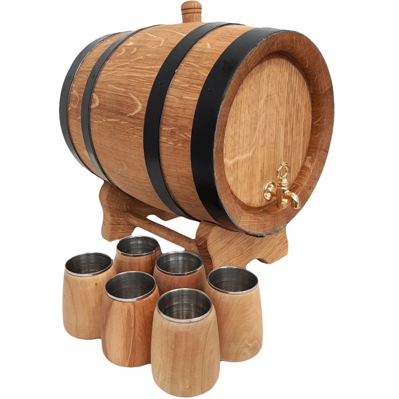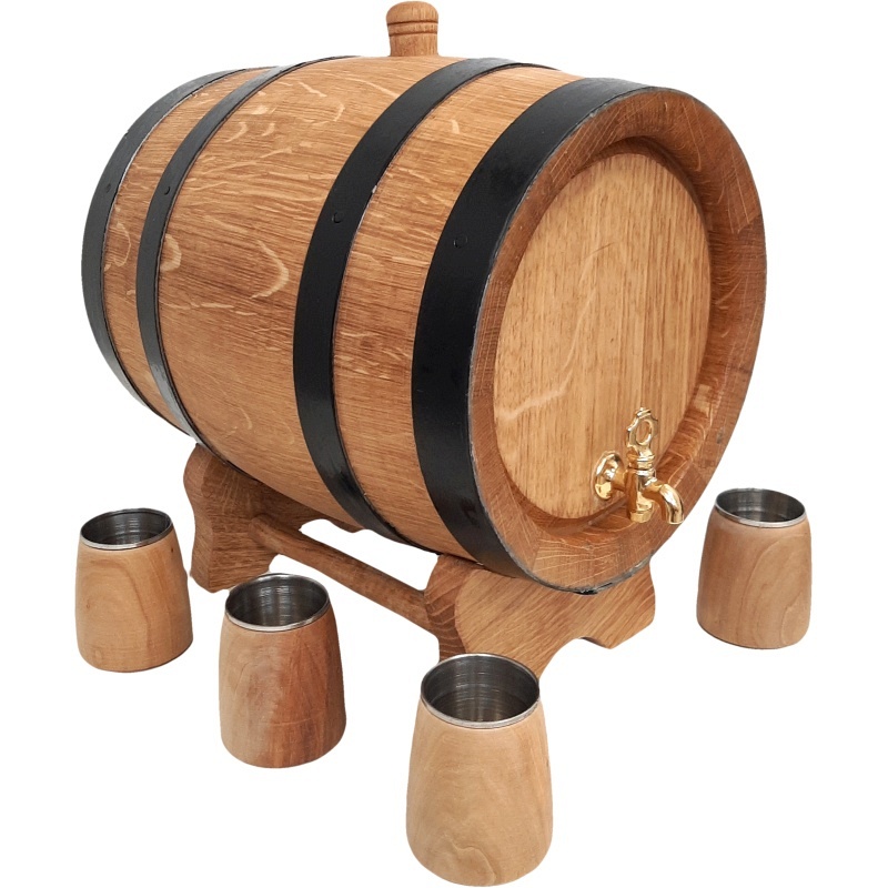 Matériau: Bois de chêne, cerceaux noirs, acier inoxydable