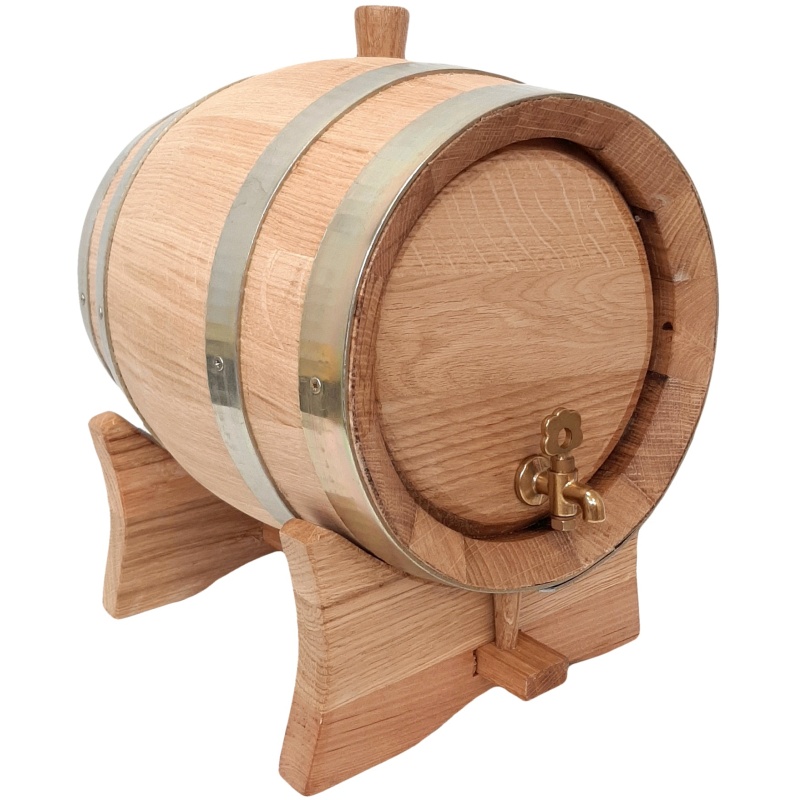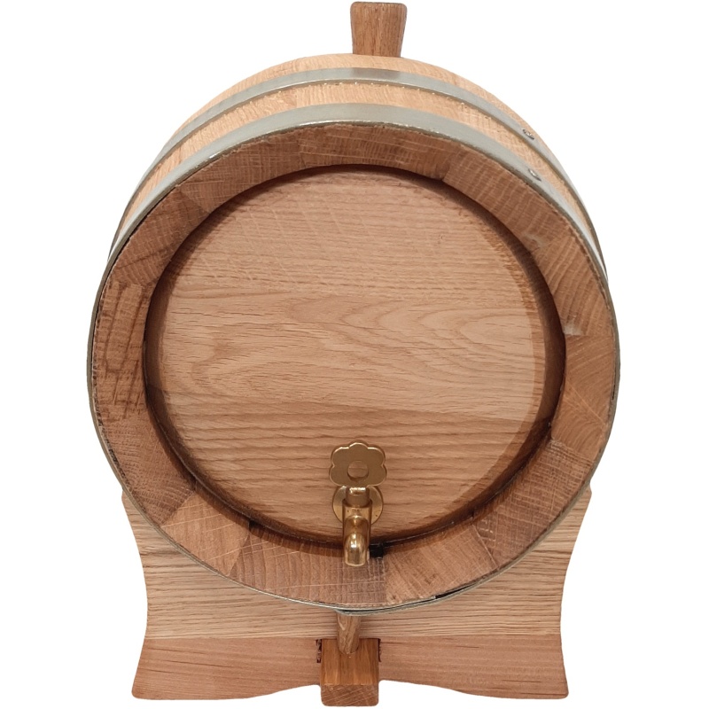 Ce fût exclusif en chêne de 5 litres se distingue avant tout par sa robustesse, son savoir-faire artisanal et la belle teinte claire de son bois de chêne de haute qualité. Fabriqué en planches de chêne extra-épaisses, il offre des conditions idéales pour la maturation des boissons et garantit une longue durée de vie. Grâce à ses élégants cerclages métalliques et à son robinet en laiton travaillé avec précision, ce fût est non seulement pratique, mais aussi extrêmement esthétique : il embellira tout intérieur ou cave à vin. Sa base en bois massif, qui souligne son aspect traditionnel, assure stabilité et facilité d'utilisation.