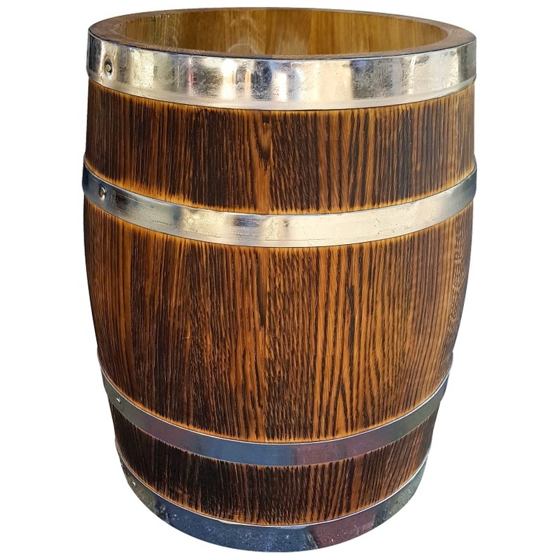 Un tonneau en bois fait main, pratique pour conserver divers ingrédients. Outre son utilité, il est également esthétique.