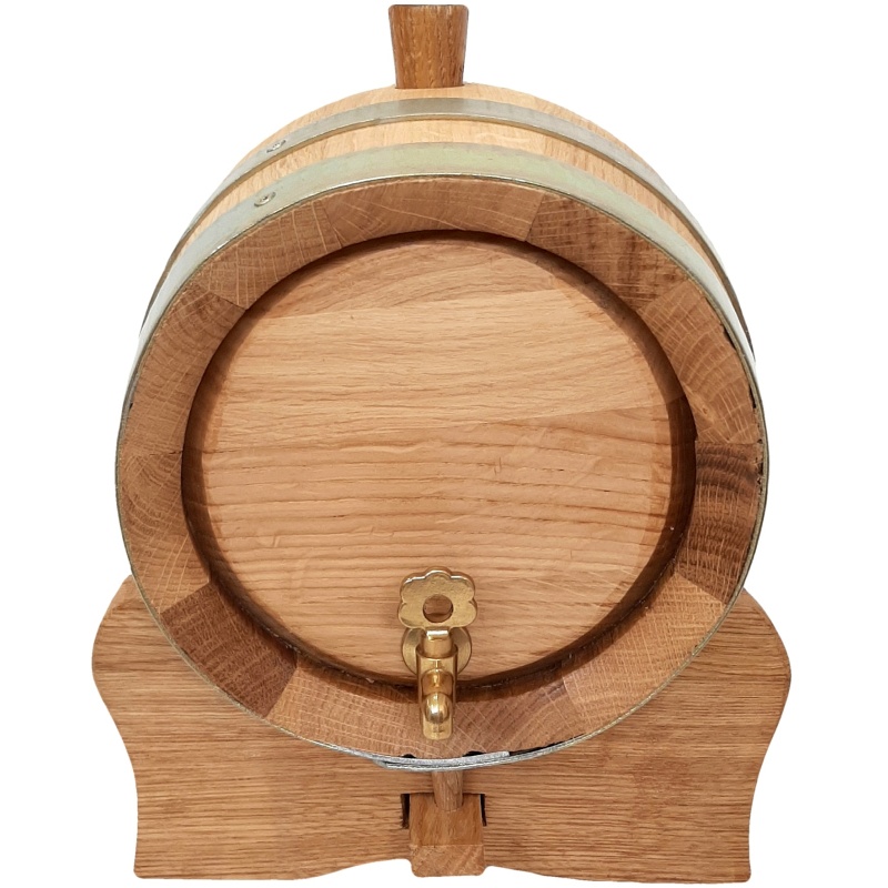Ce fût exceptionnel de 3 litres allie une construction solide en chêne de haute qualité à des façades exclusives en acacia, qui lui confèrent non seulement un aspect unique, mais aussi un profil aromatique intéressant pour la maturation des boissons. Sa finition claire met magnifiquement en valeur le veinage naturel du bois et fait de ce fût un véritable bijou artisanal. Grâce à ses parois en chêne extra-épaisses, le fût possède d'excellentes propriétés isolantes et contribue à la maturation lente et qualitative de vos boissons. Le robinet en laiton et le socle en bois stable complètent l'impression de luxe générale.