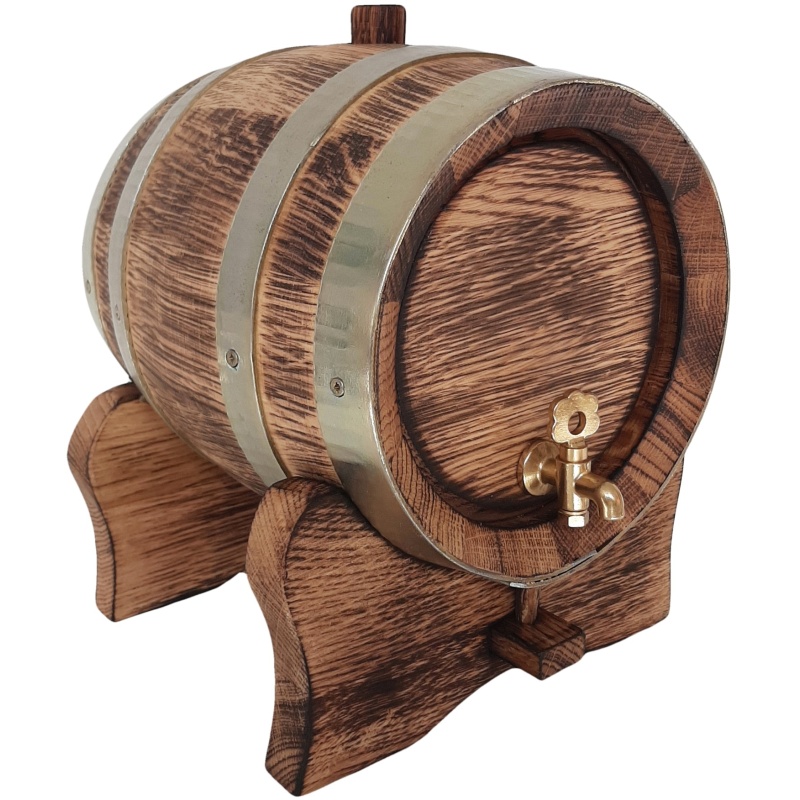 Ce tonneau luxueux allie savoir-faire traditionnel et design exclusif, et impressionne dès le premier regard. Fabriqué en chêne extra-épais, il lui confère une résistance exceptionnelle et une longue durée de vie. Sa finition foncée, obtenue par un tannage délicat, lui confère un caractère élégant et rustique et met en valeur le veinage unique du bois. Les façades en agate apportent un contraste intéressant et une touche d'élégance à l'ensemble. Le fût repose sur une base stable et solide et est équipé d'un robinet en laiton de haute qualité pour un soutirage facile. Il est donc immédiatement prêt à l'emploi.