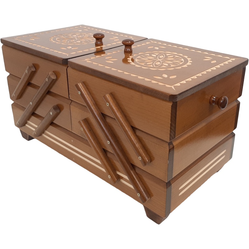 D’accuei » Décorations en bois » Grande boîte à bijoux pliante en bois