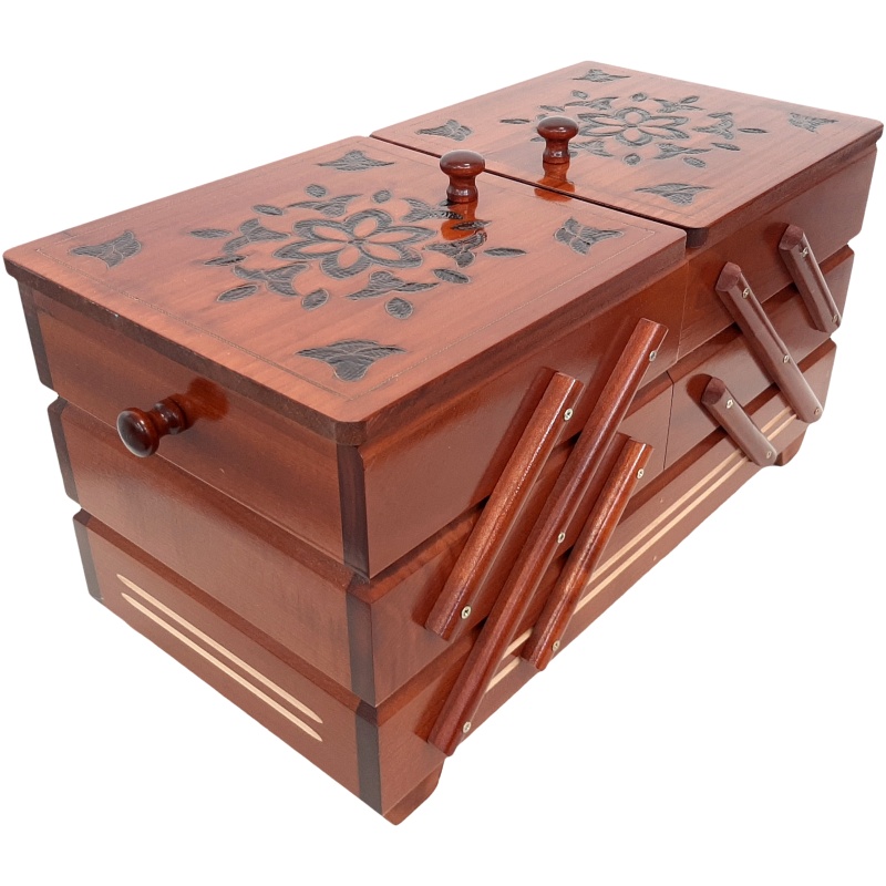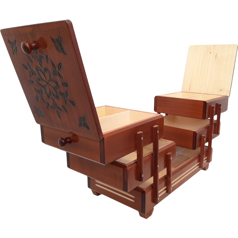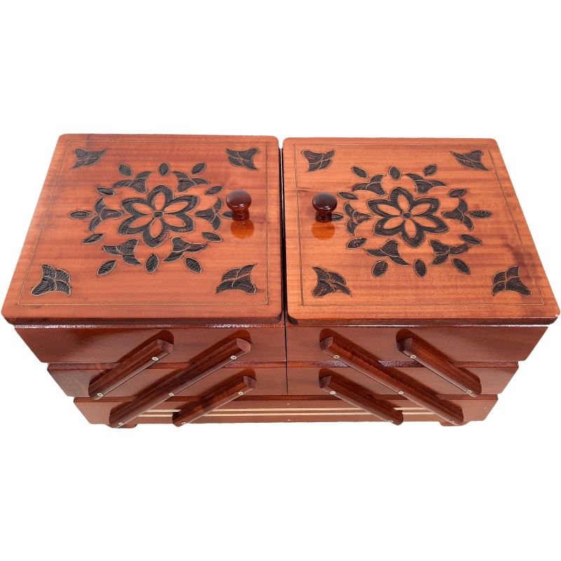 D’accuei » Décorations en bois » Grande boîte à bijoux pliante en bois