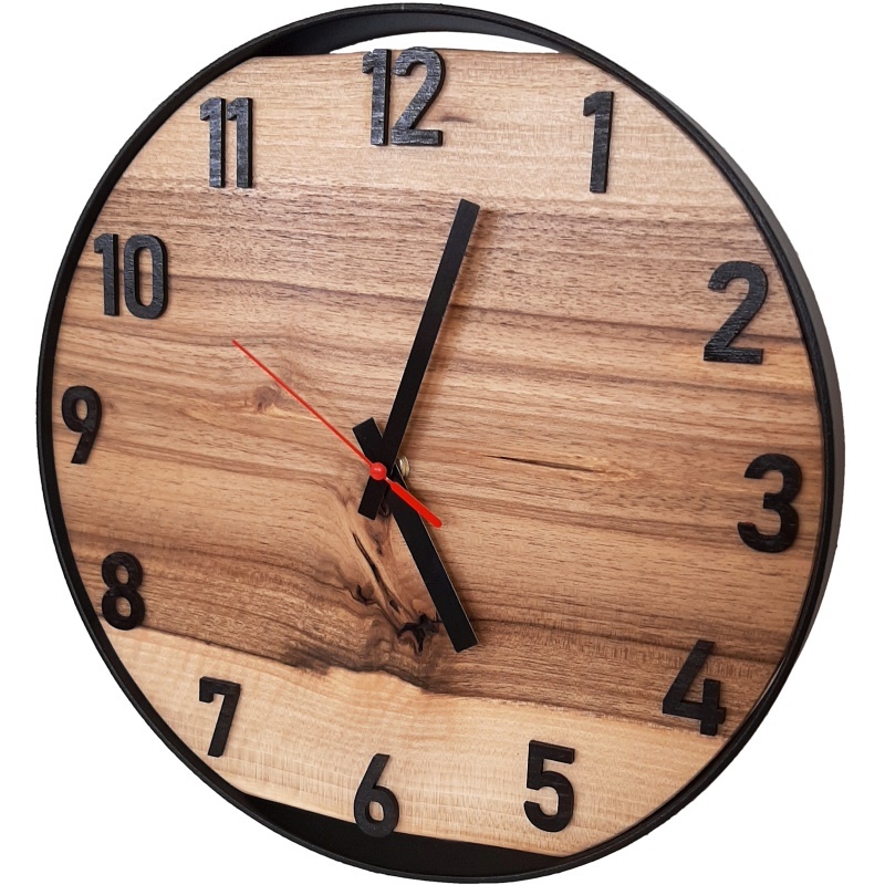 Découvrez la beauté d'un design naturel et pur avec cette horloge murale unique alliant élégance rustique et minimalisme moderne. Cette horloge en bois de 30 cm de diamètre, soigneusement conçue, est non seulement un accessoire fonctionnel, mais aussi un élément d'intérieur remarquable qui attire immédiatement le regard. L'association du bois massif de haute qualité et d'un cadre en métal noir crée un contraste harmonieux entre la chaleur du matériau naturel et la simplicité industrielle.