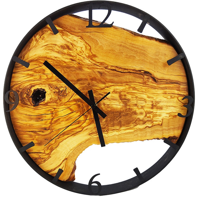 • Design original en bois d'olivier naturel : chaque cadran présente un motif, des nœuds et une structure uniques, typiques du bois d'olivier. Cette irrégularité naturelle fait de chaque horloge une pièce authentique et unique.