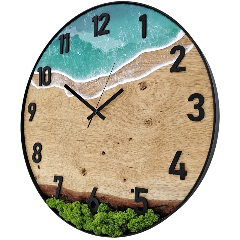 • Motif marin réaliste en résine époxy - profondeur visuelle et originalité - L'effet de vagues marines réalisé à la main avec une fine mousse crée une dynamique et une plasticité artistique à la surface de l'horloge. Chaque pièce est originale, car le motif ondulé ne se répète jamais exactement à l'identique.