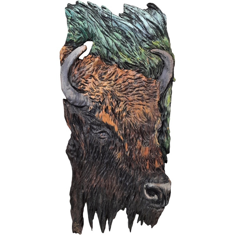 D’accuei » Peintures sculptées à la main » Image en bois d'un buffle