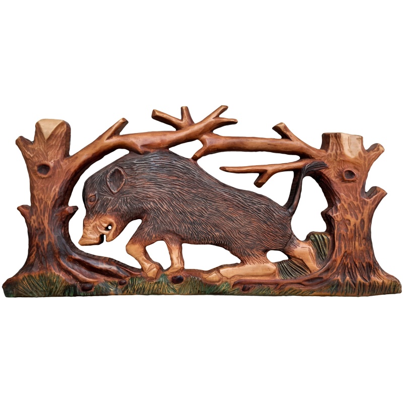 D’accuei » Peintures sculptées à la main » Image sculptée d'un sanglier