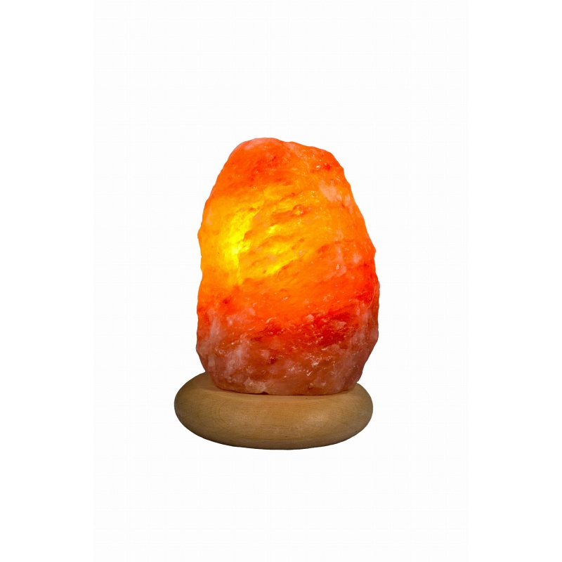 Une lampe de sel est une lampe en cristal de sel, sculptée à la main et dotée d'un abat-jour orange naturel unique, montée sur un socle rond en bois.
