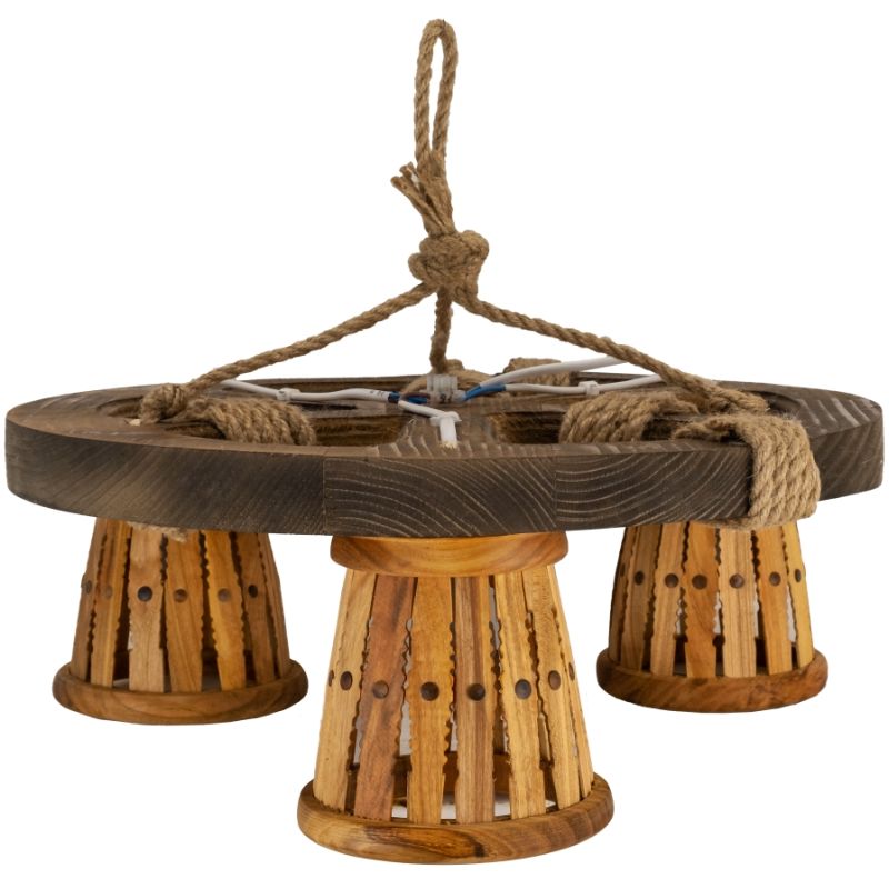 En stockCette suspension en bois à trois branches est un élément unique qui attire immédiatement le regard par son design rustique, ses matériaux naturels et son savoir-faire artisanal. L'association de bois clair et foncé, associée à une corde de chanvre...