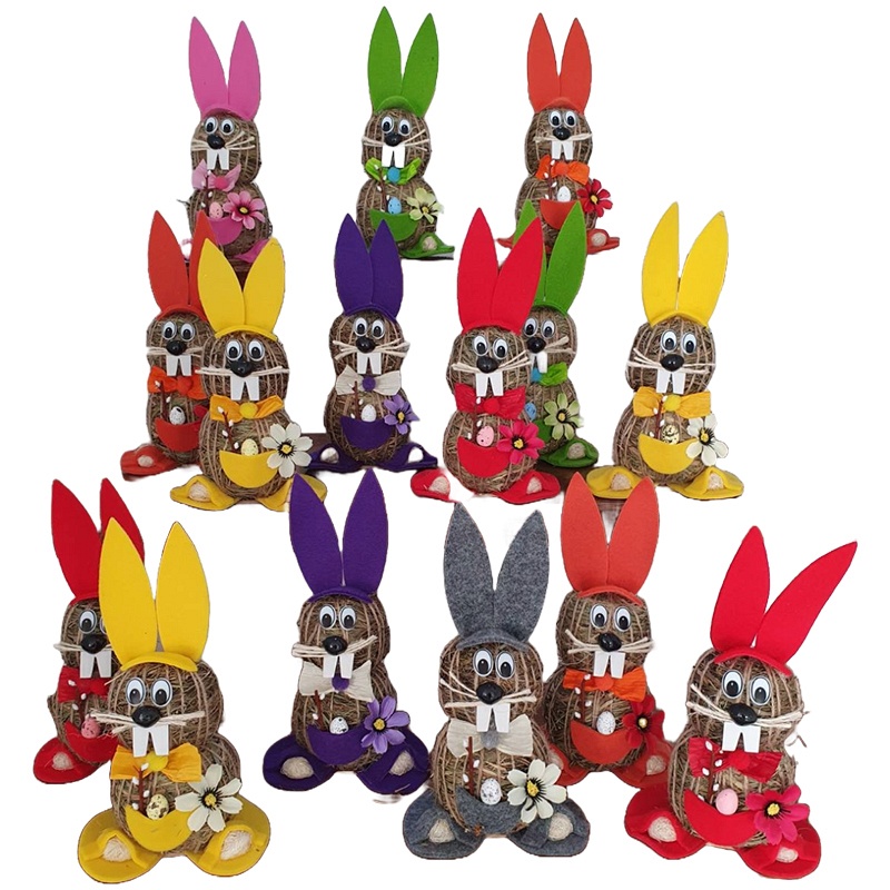• Base naturelle aux couleurs vives – Le lapin est fabriqué en ficelle naturelle, ce qui lui confère une touche rustique, et agrémenté d'éléments colorés distinctifs qui attireront le regard dès le premier coup d'œil.