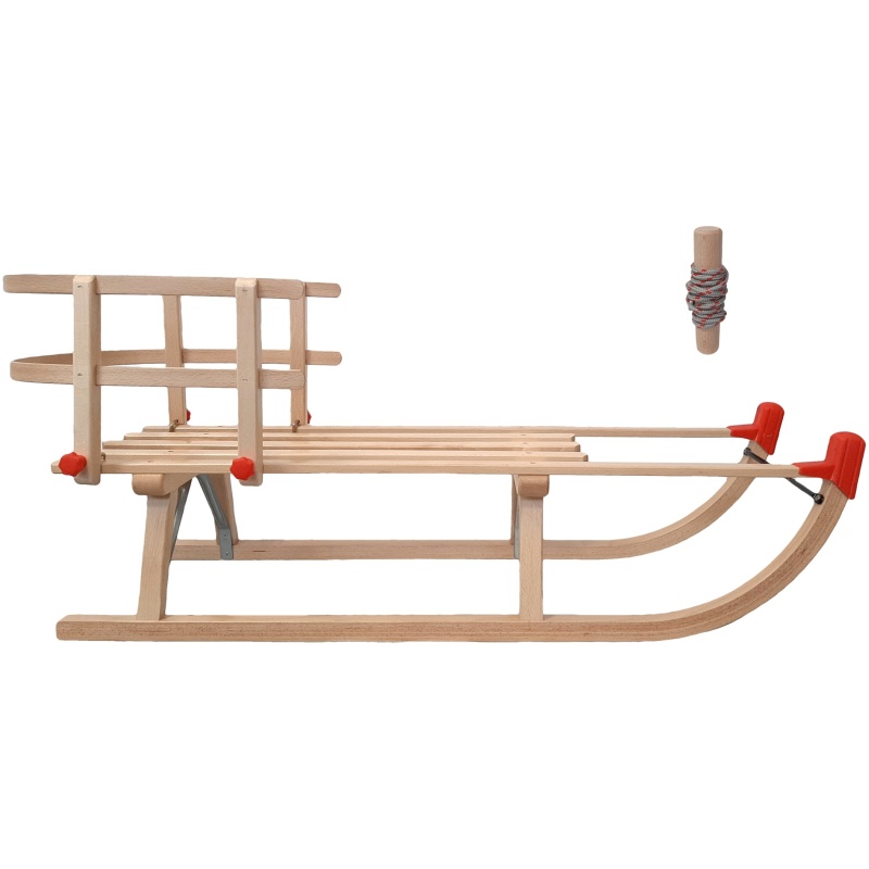 • Embouts en plastique pratiques et corde avec poignée : Les embouts de protection rouges à l'avant protègent le bois des chocs et réduisent les risques de blessures. L'emballage comprend également une corde de remorquage robuste avec poignée en bois, idéale pour guider confortablement la luge lors de vos promenades.