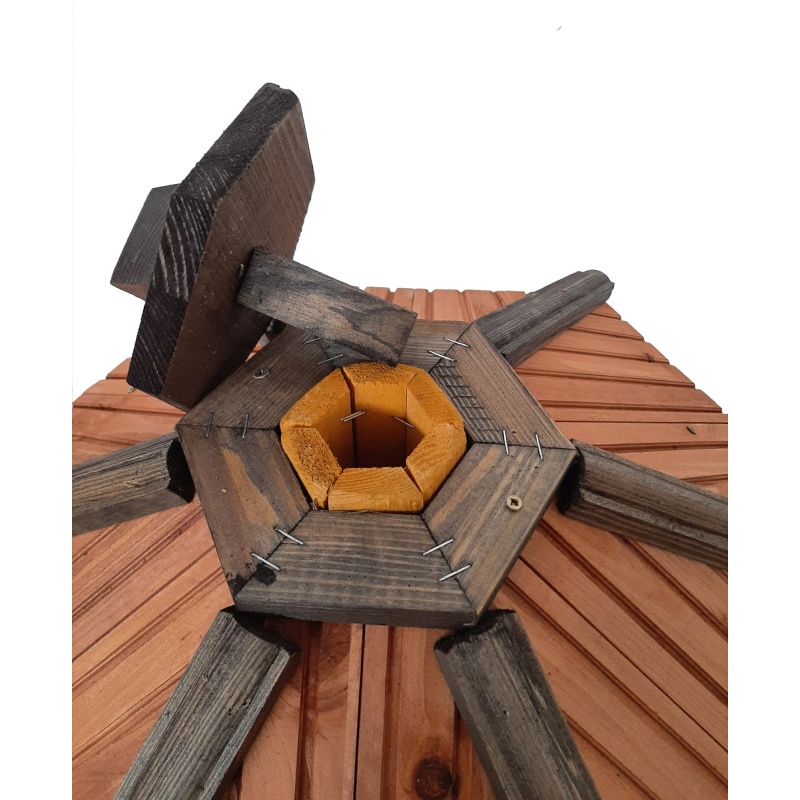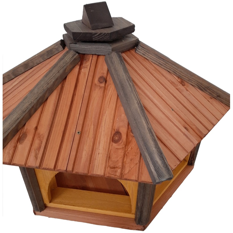 Mangeoire à oiseaux en bois, largeur du toit : 60 cm x diamètre du fond : 50 cm x hauteur : 40 cm