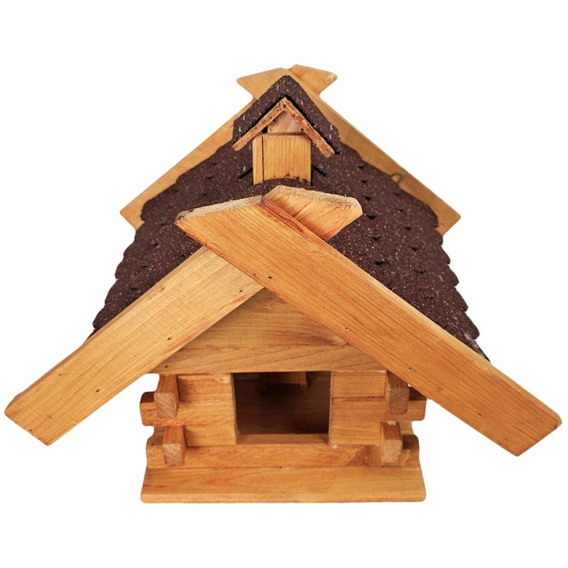D’accuei » Mangeoire à oiseaux » Mangeoire à oiseaux en bois avec récipient à nourriture