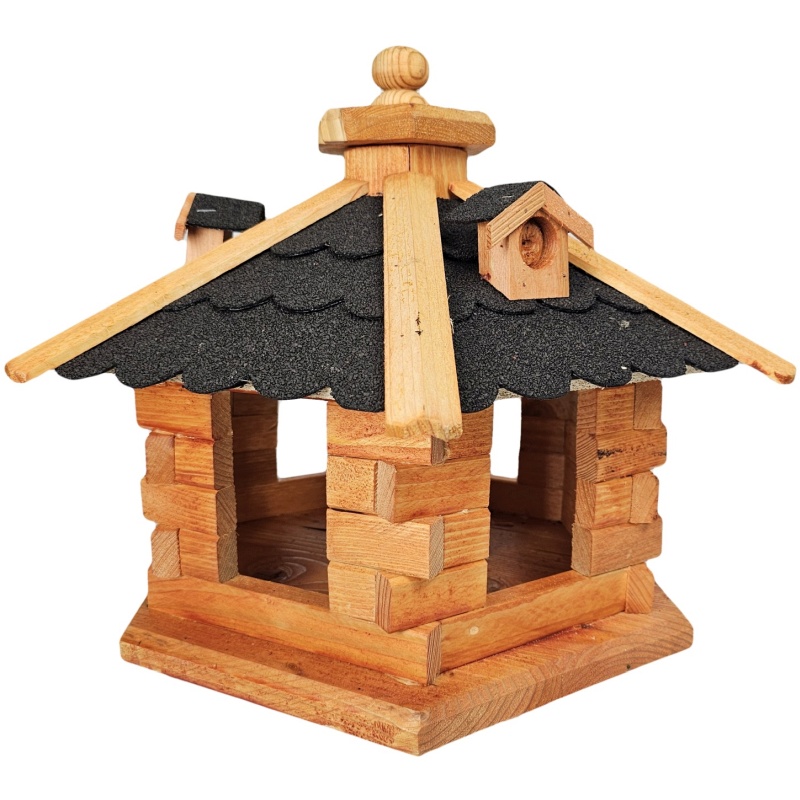 D’accuei » Mangeoire à oiseaux » Mangeoire à oiseaux en bois avec récipient à nourriture