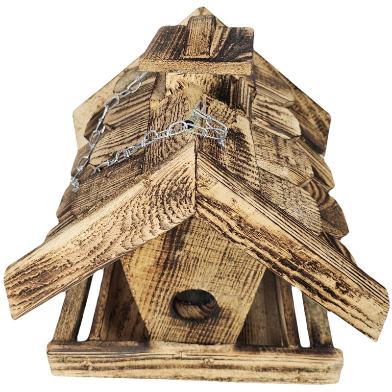 Mangeoire à oiseaux en bois avec récipient à nourriture